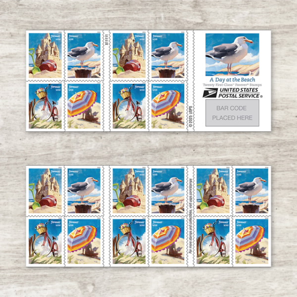 "The Postal Service will release its A Day at the Beach stamps on Friday, April 24. The stamps celebrate the simple joys of coastal life in four designs.